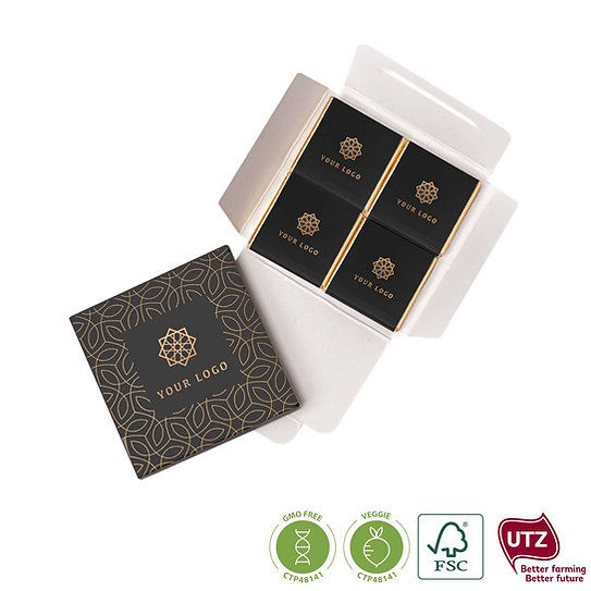 Le nostre confezioni di cioccolatini brandizzati sono la scelta perfetta per valorizzare il tuo marchio con eleganza e gusto. Realizzate con cioccolato di alta qualità e packaging completamente personalizzabile con il tuo logo, rappresentano un’idea raffinata e originale per regali aziendali, eventi e campagne promozionali. Un modo unico per lasciare un’impressione indimenticabile e far parlare il tuo brand… con dolcezza. Contattaci per creare la tua confezione su misura